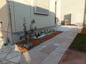 2013.10.25 ブログ 新築のお庭のよくある風景です。 土がむき出しのままです。 アプローチとレンガチップで靴が 汚れないようにして、防草対策、景観と 管理しやすい庭にになりました。 七人の小人の歌が聞こえてくる〈奥様と息子さん作♪〉 一覧に戻る